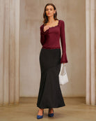 Scallop Knit Top | Golvende Halslijn & Uitlopende Mouwen | Wijnrood Elegance