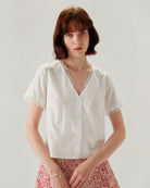 Soft V-Neck Blouse | Witte Minimal Chic | Luchtige Elegantie