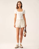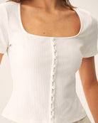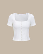 Square Neck Top | Knoopdetail & Getailleerd | Fris Wit