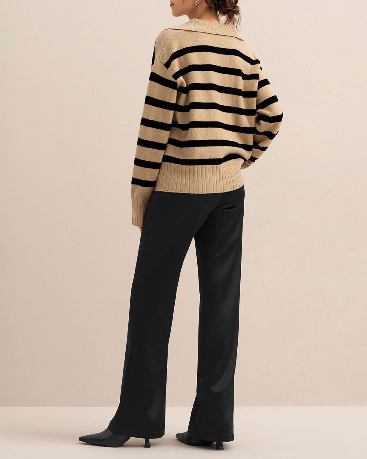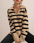 Striped Knit Polo | Zand & Zwart | Relaxed Chic