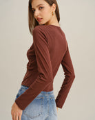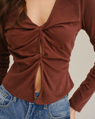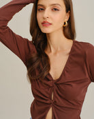 Twist Front Top | Diepe V-hals & Gathered Detail | Kastanjebruin