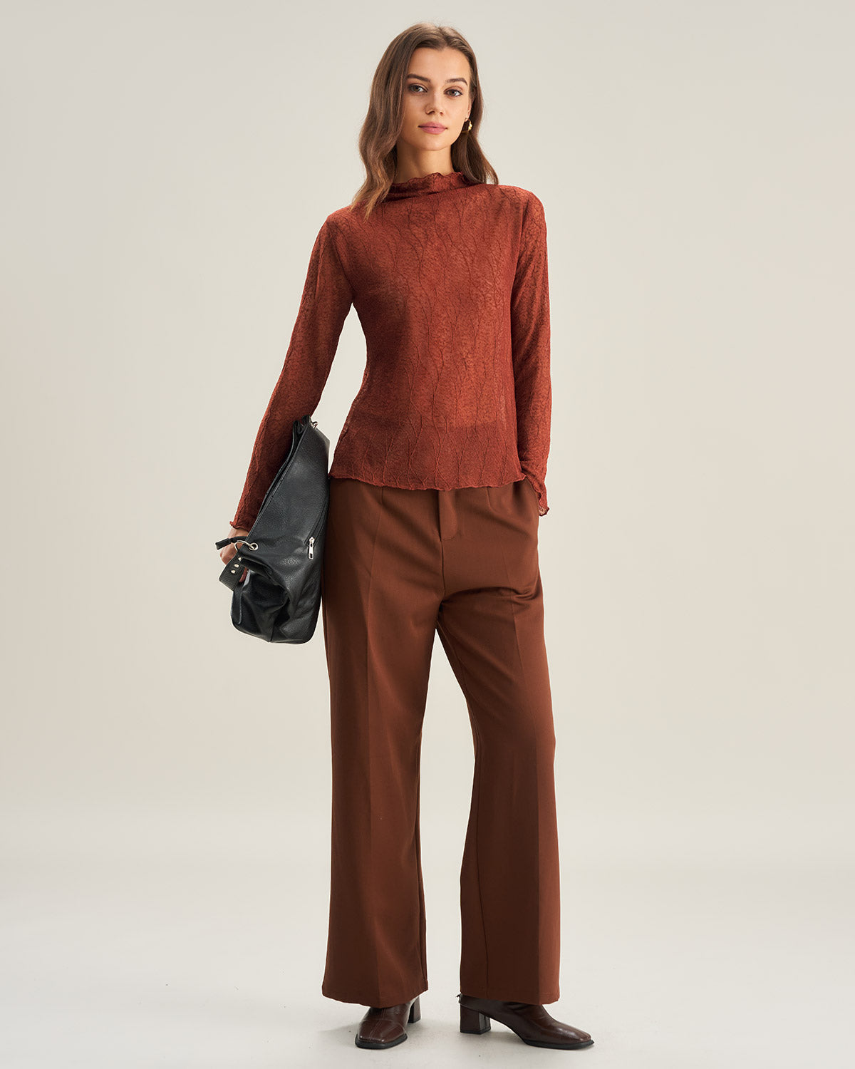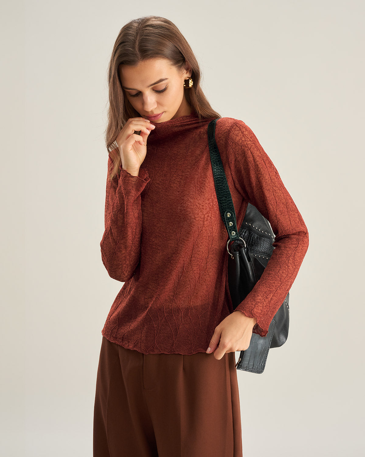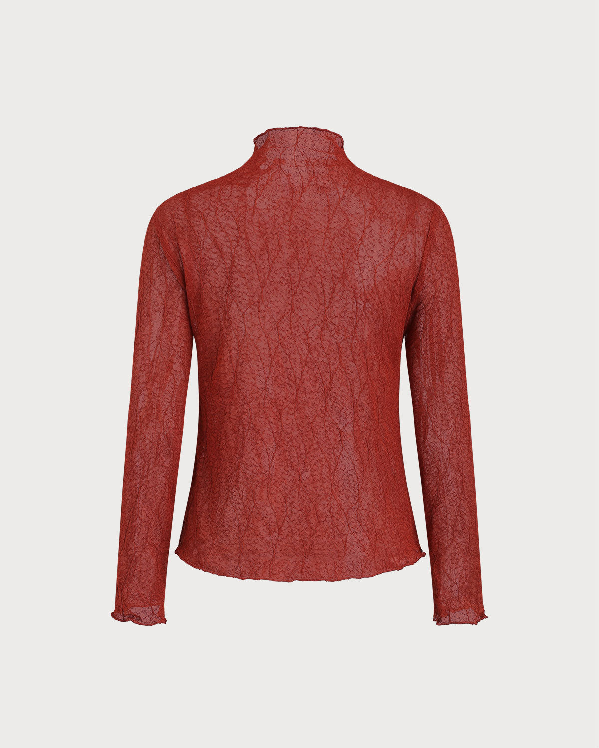 Terra Lace Top | Semi-Transparant & Col | Warm Roestrood