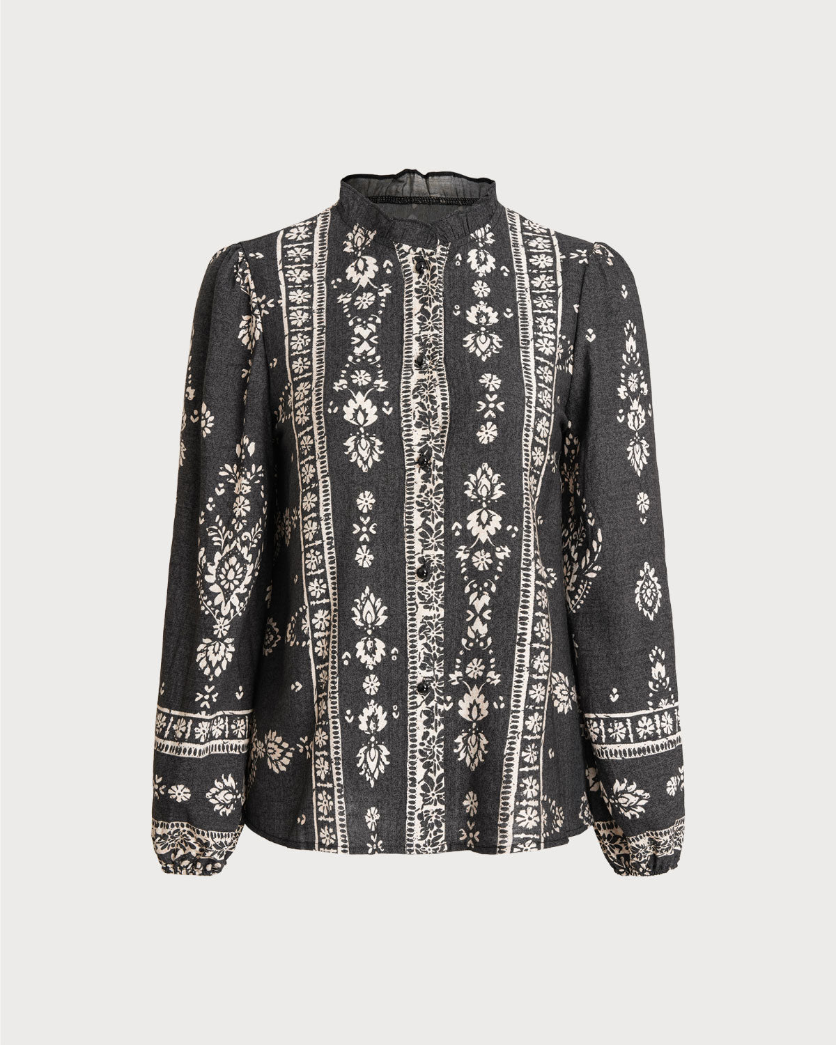 Daisy Charm Top | Bloemenprint & Ruches | Zomerfris Zwart