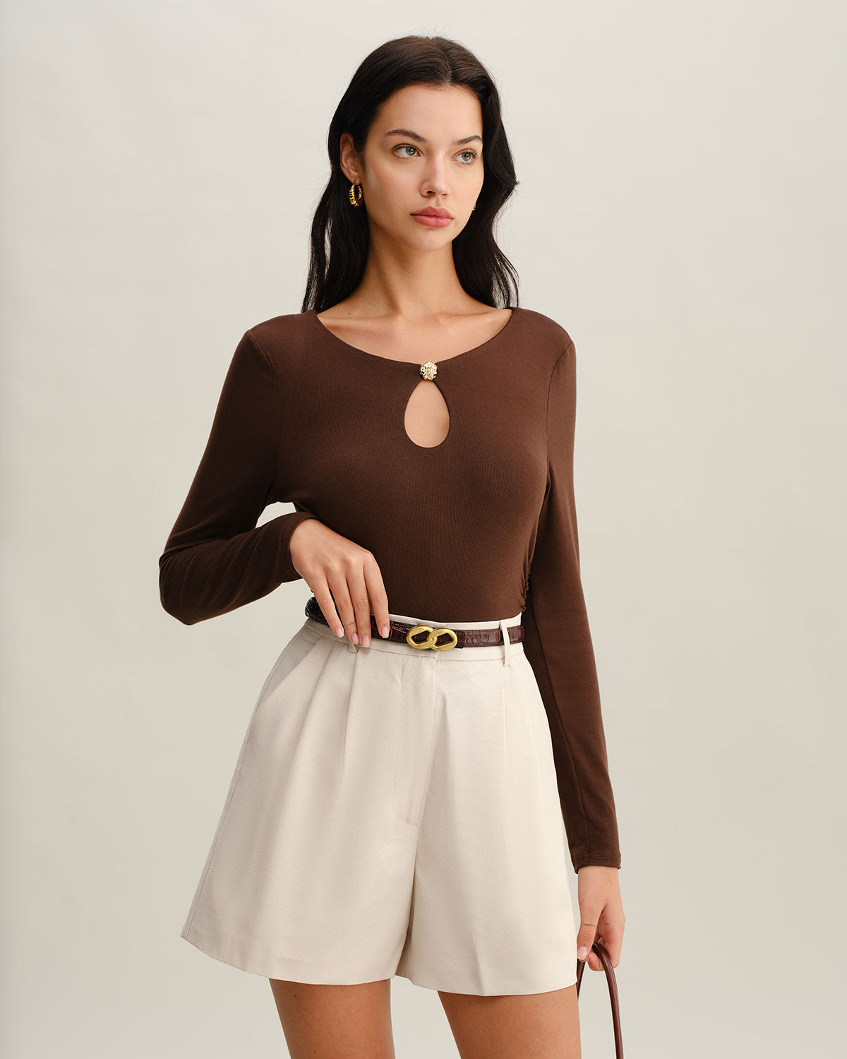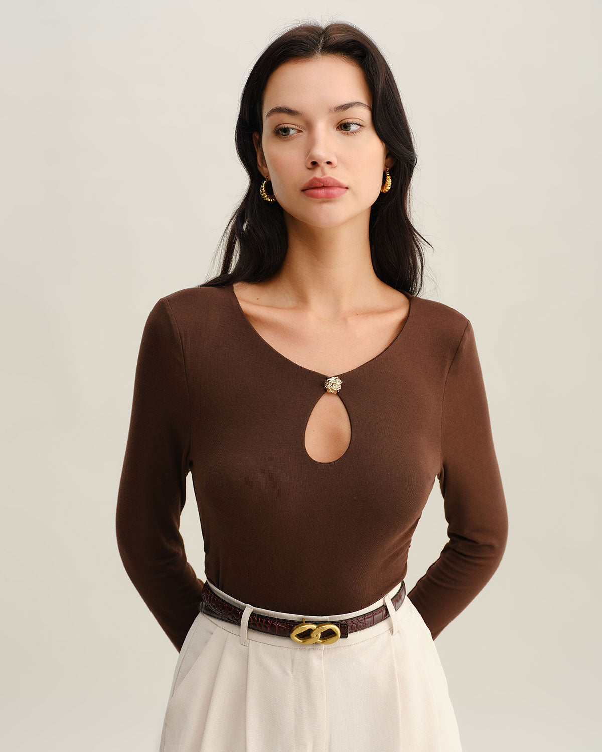 Keyhole Knit Top | Cut-Out Halsdetail | Diep Chocoladebruin