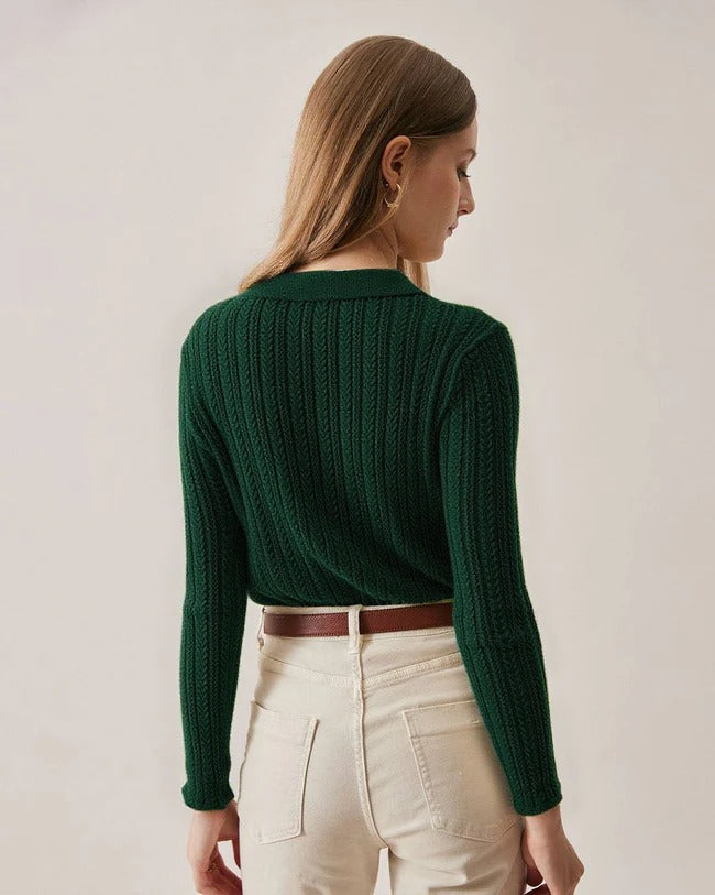 Rib Knit Blouse | Klassieke Kraag | Chocoladebruin & Groen
