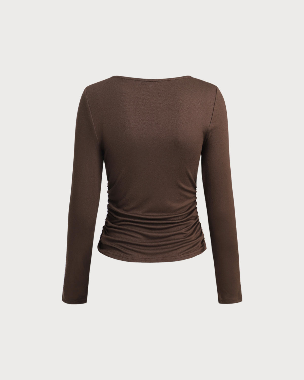 Twist Front Top | Diepe V-hals & Gathered Detail | Kastanjebruin