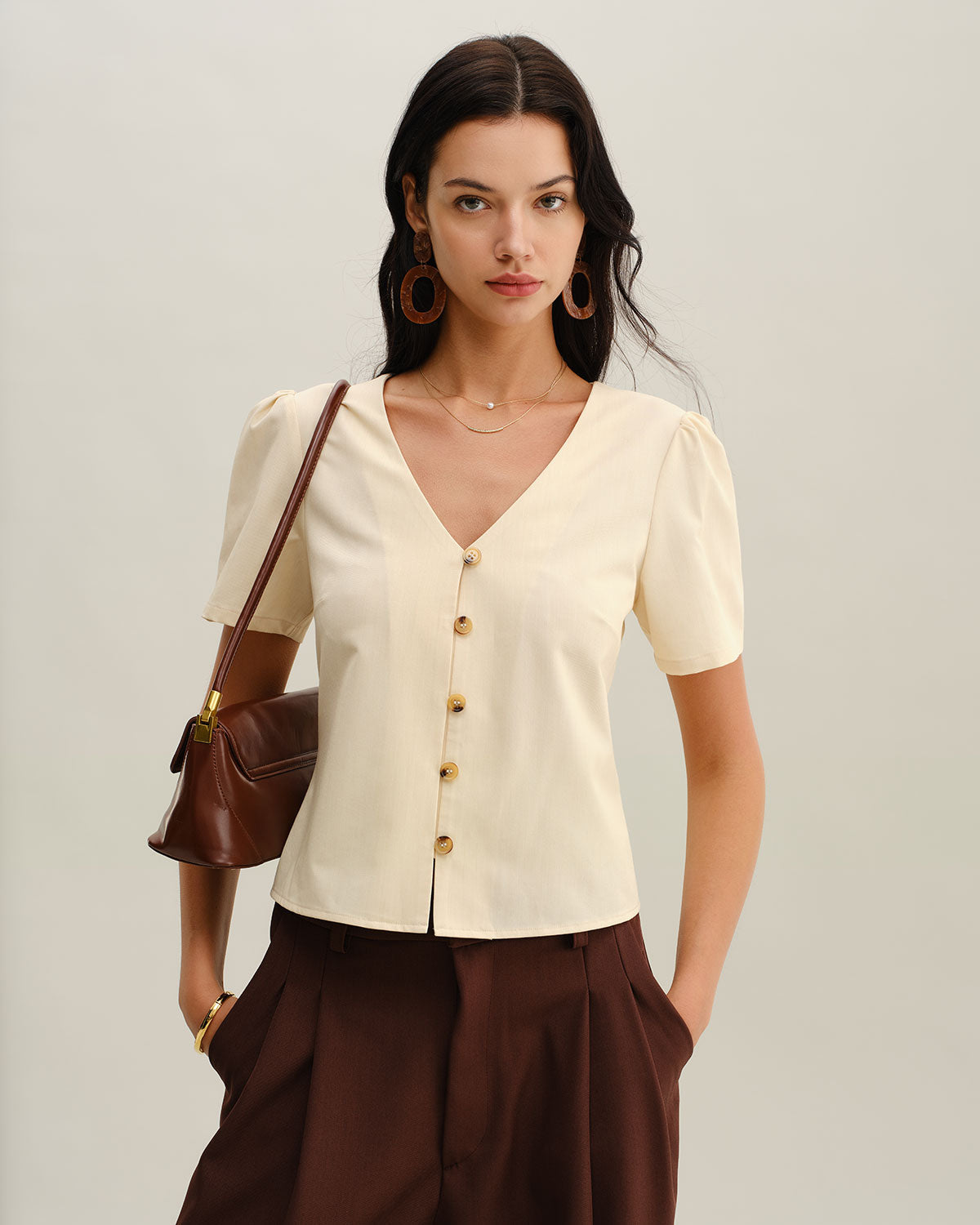 Été Button Blouse | Korte Mouwen | Minimalistisch & Elegant