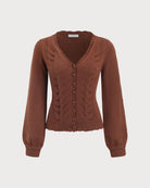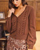 Boho Knit Cardigan | Gehaakte Details & V-Hals | Chocoladebruin