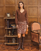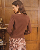 De Boho Knit Cardigan brengt warmte en vintage flair samen in één stijlvol ontwerp. Deze cardigan in rijke chocoladebruine tint is voorzien van verfijnde gehaakte details langs de V-hals en knopenrij, wat zorgt voor een romantische boho-uitstraling. De licht gepofte mouwen en geribde boorden maken het geheel vrouwelijk en speels – perfect voor knusse, maar modieuze dagen.