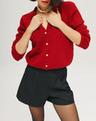 Combineer de Classic Knit Cardigan met een zwarte short en panty voor een chique city-look. Voeg pumps en een parelketting toe voor een elegante vintage vibe. Ook mooi op een jeans of over een slipdress voor extra veelzijdigheid.