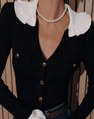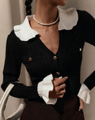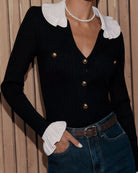 Contrast Collar Knit | Gouden Knopen & Klassieke Details | Zwart-Wit Chic