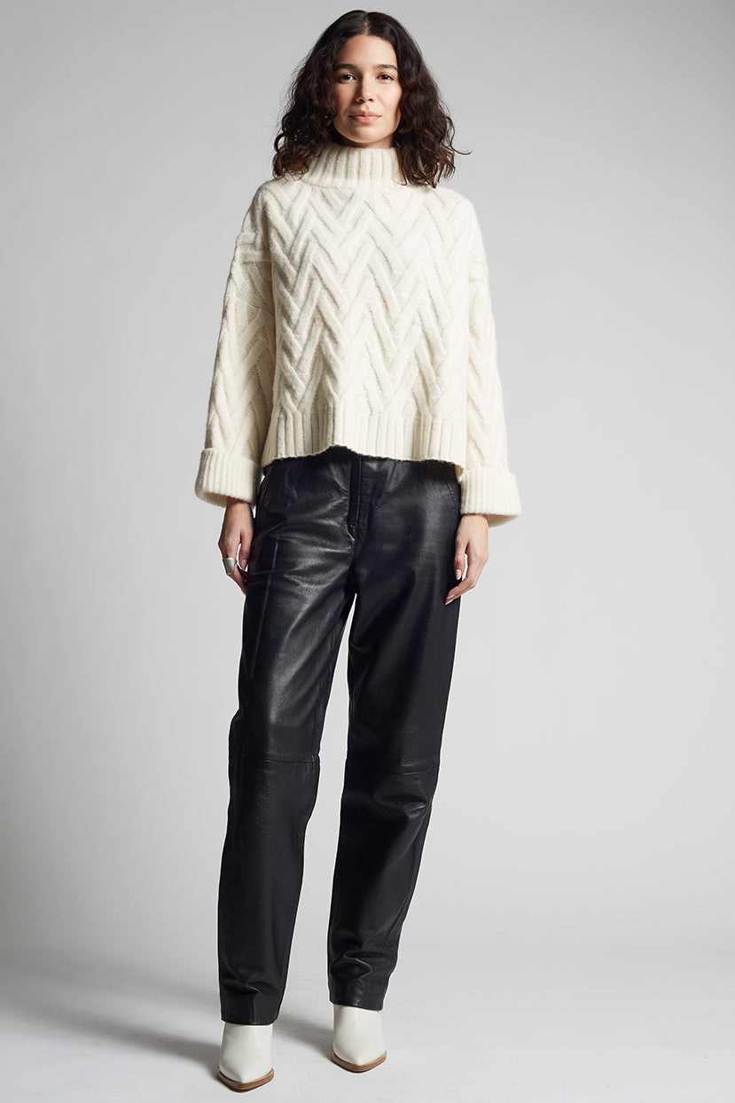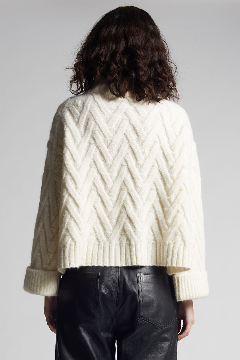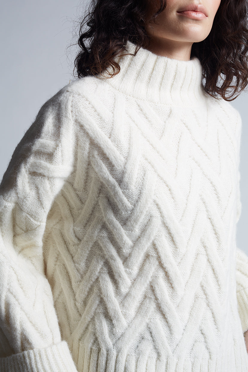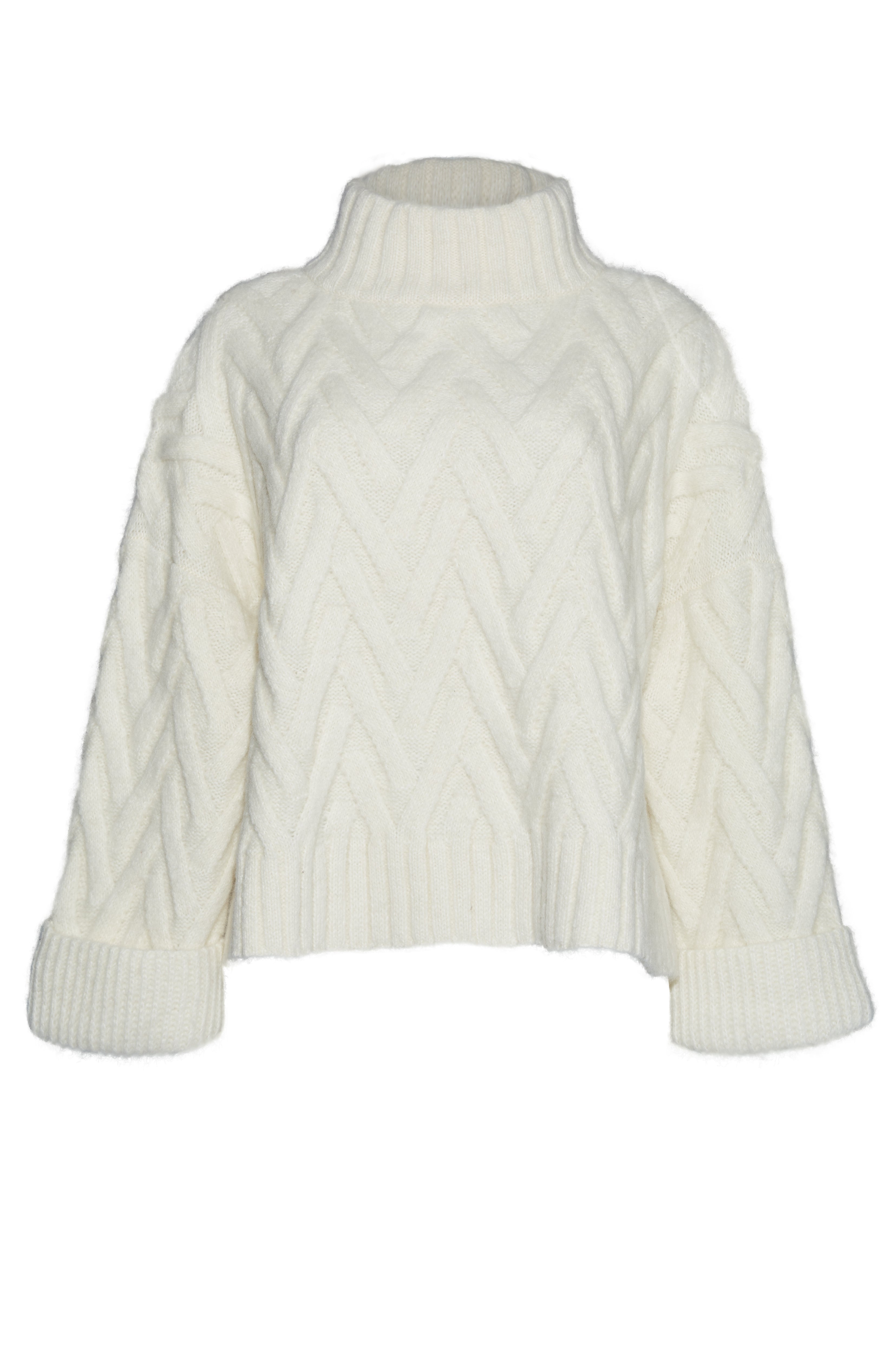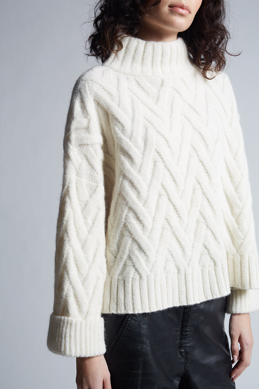 Trui met hoge hals en gestructureerd kabelpatroon