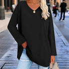 Details: Diepe V-hals, lange mouwen, split aan de zijkanten