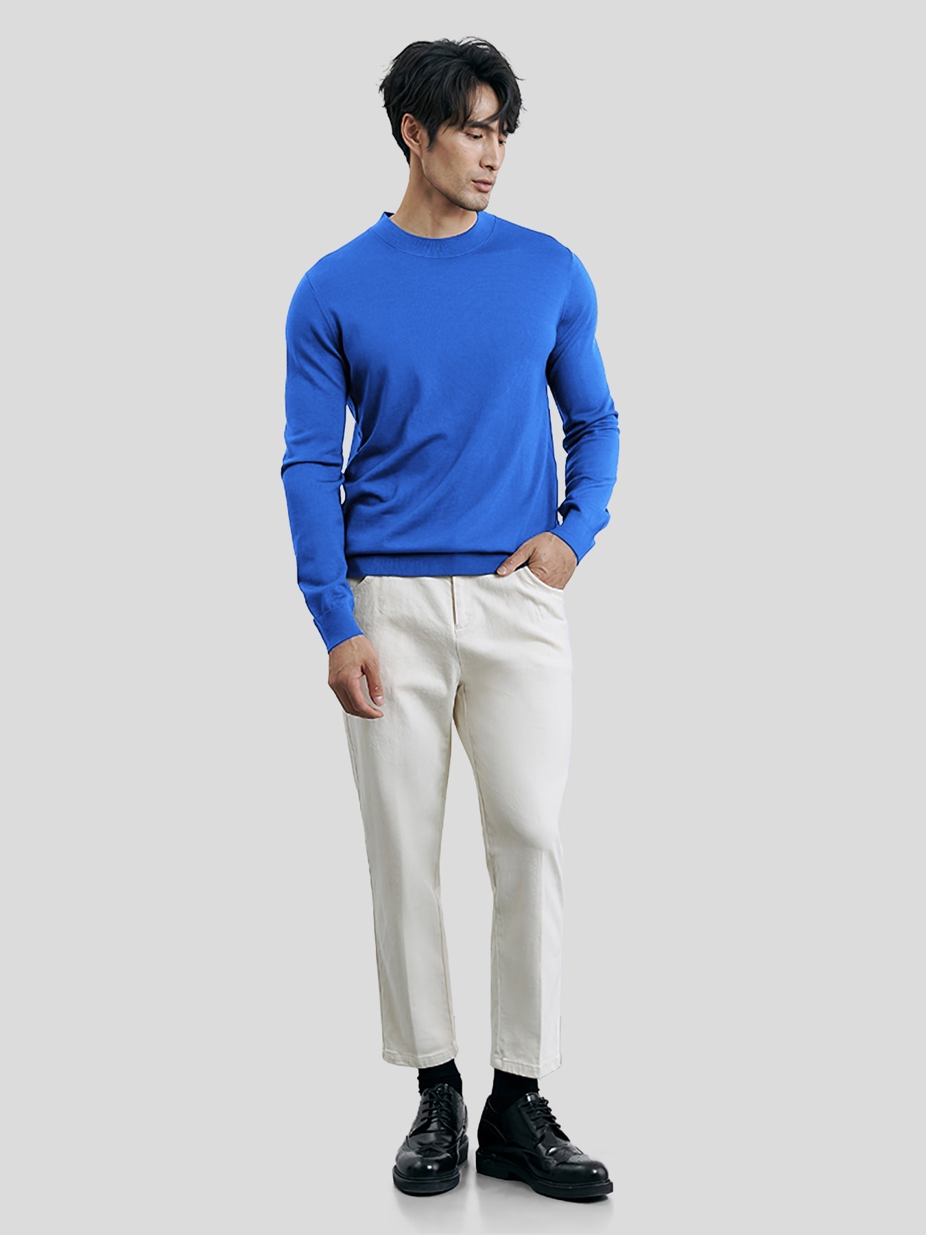 Combineer de Essential Knit Sweater met een chino en leren sneakers voor een smart casual outfit. Of draag hem over een overhemd voor een verfijnde laagjeslook op kantoor of tijdens een diner.