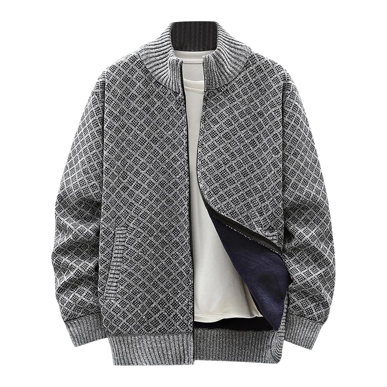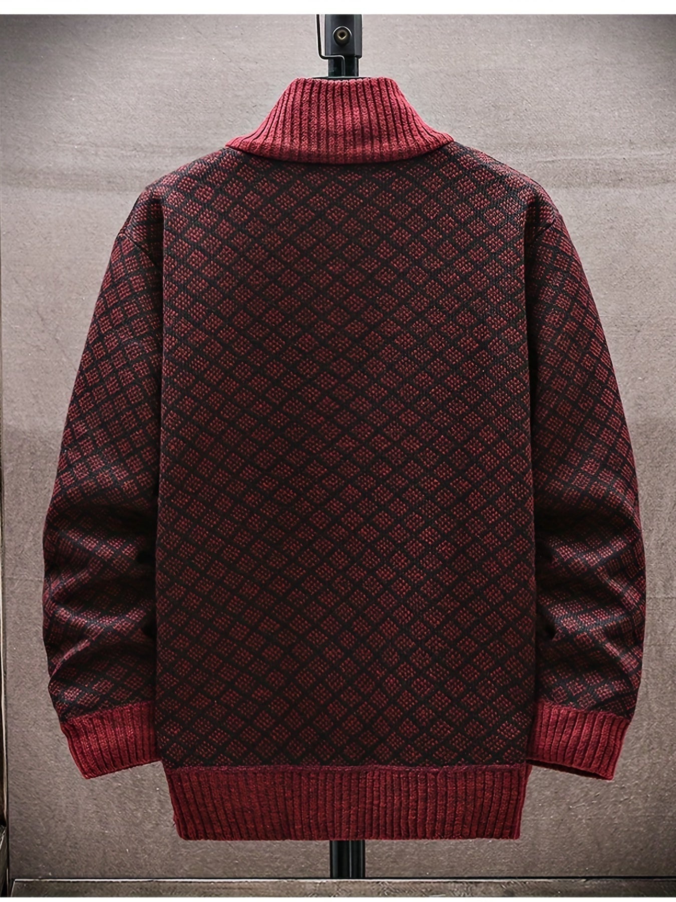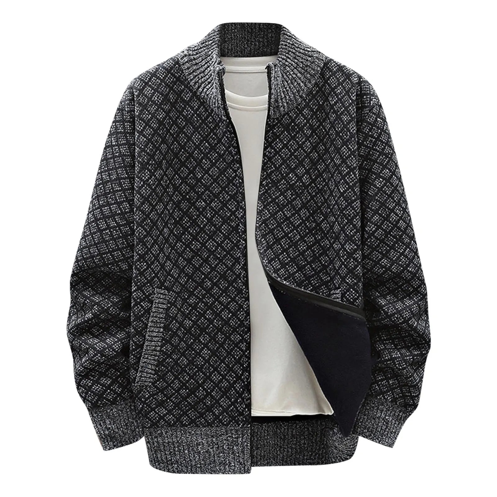 - Design: Fijn gebreid patroon met opstaande kraag en ritssluiting
