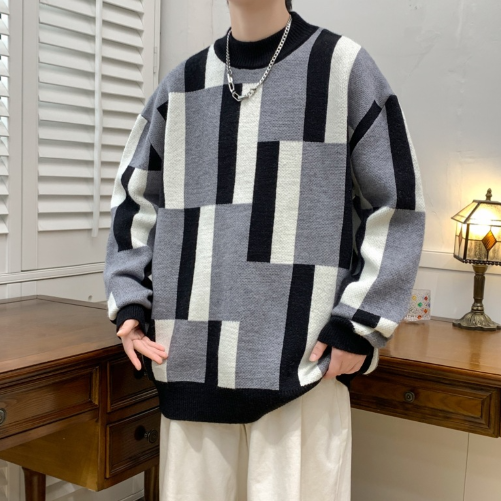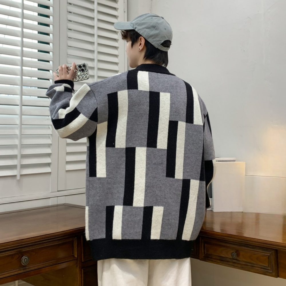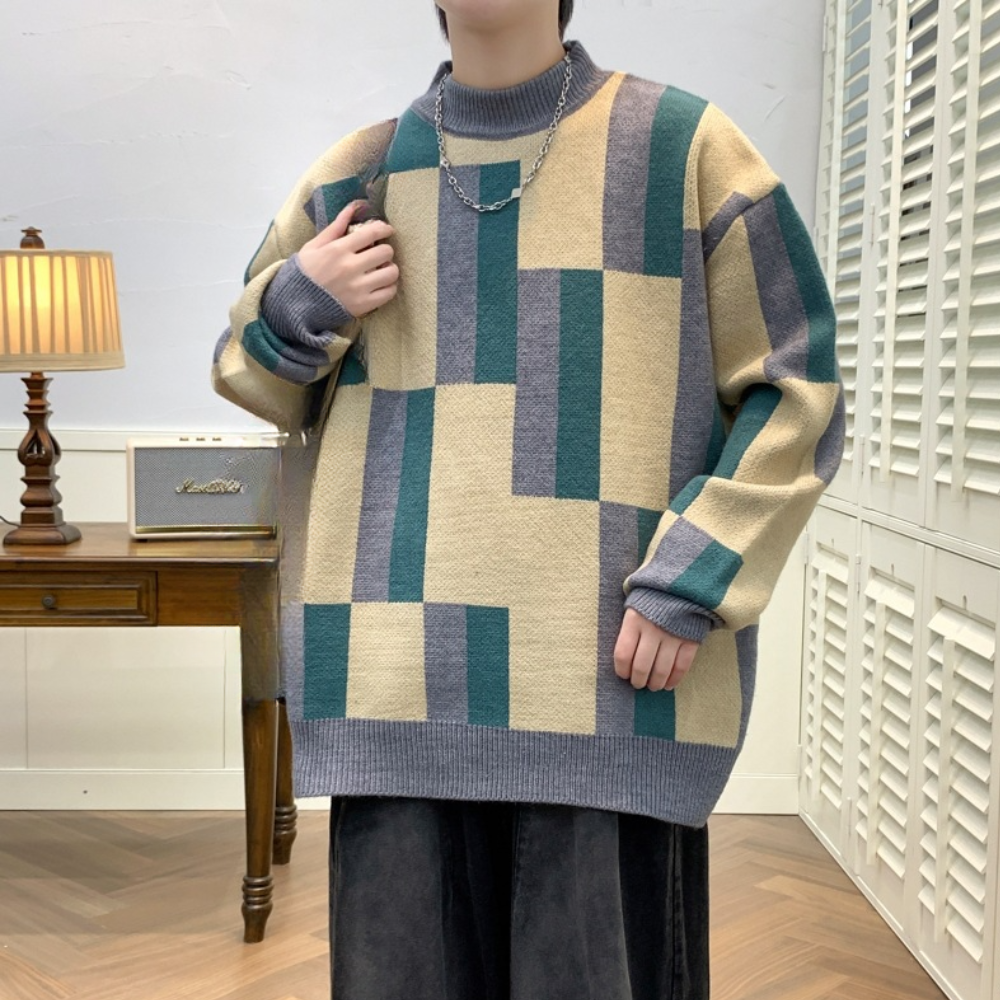 Deze heren trui valt meteen op dankzij het geometrische patchworkpatroon in stijlvolle kleurcombinaties zoals zandgroen, blauwgrijs en zwart-wit. De oversized fit geeft een relaxte look, terwijl de zachte, ademende knit zorgt voor maximaal draagcomfort. Of je nu je streetwear wilt upgraden of gewoon warm en trendy de dag door wilt komen – deze trui levert stijl met gemak.
