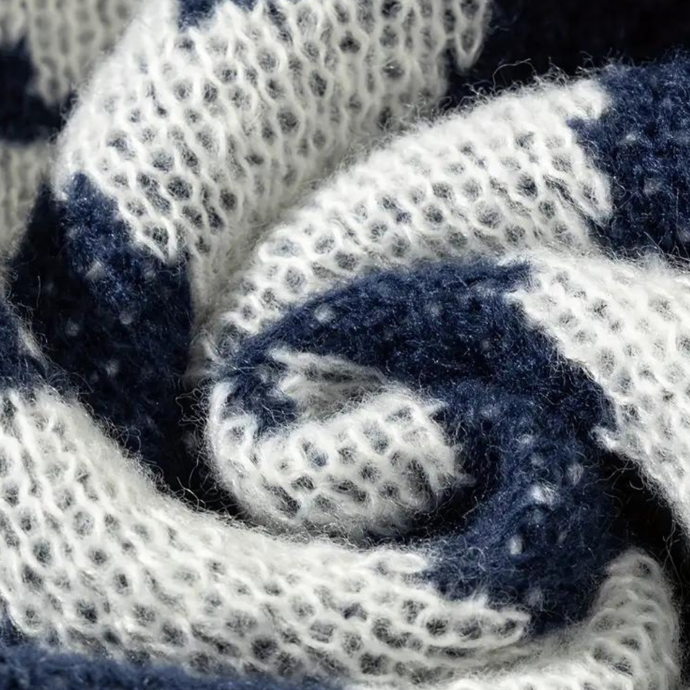 Deze heren trui heeft een oversized pasvorm en een opvallend geometrisch patroon geïnspireerd op traditionele Aztec prints. Het kleurenspel in navy en wit zorgt voor een sterk contrast op de zwarte achtergrond. Gemaakt van een zachte en warme acrylmix, perfect voor herfst en winter. De dropped shoulders en wijde mouwen geven het geheel een relaxte, street-ready vibe.