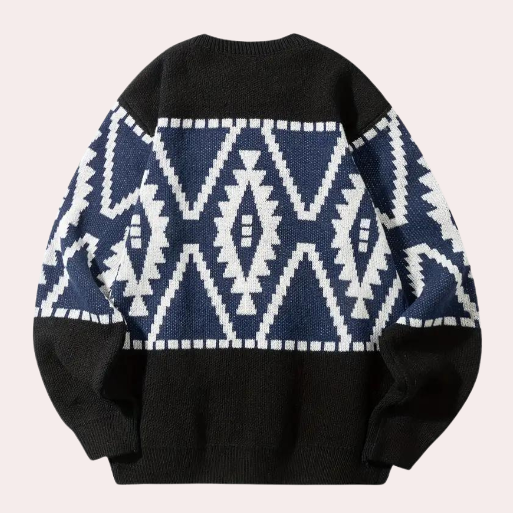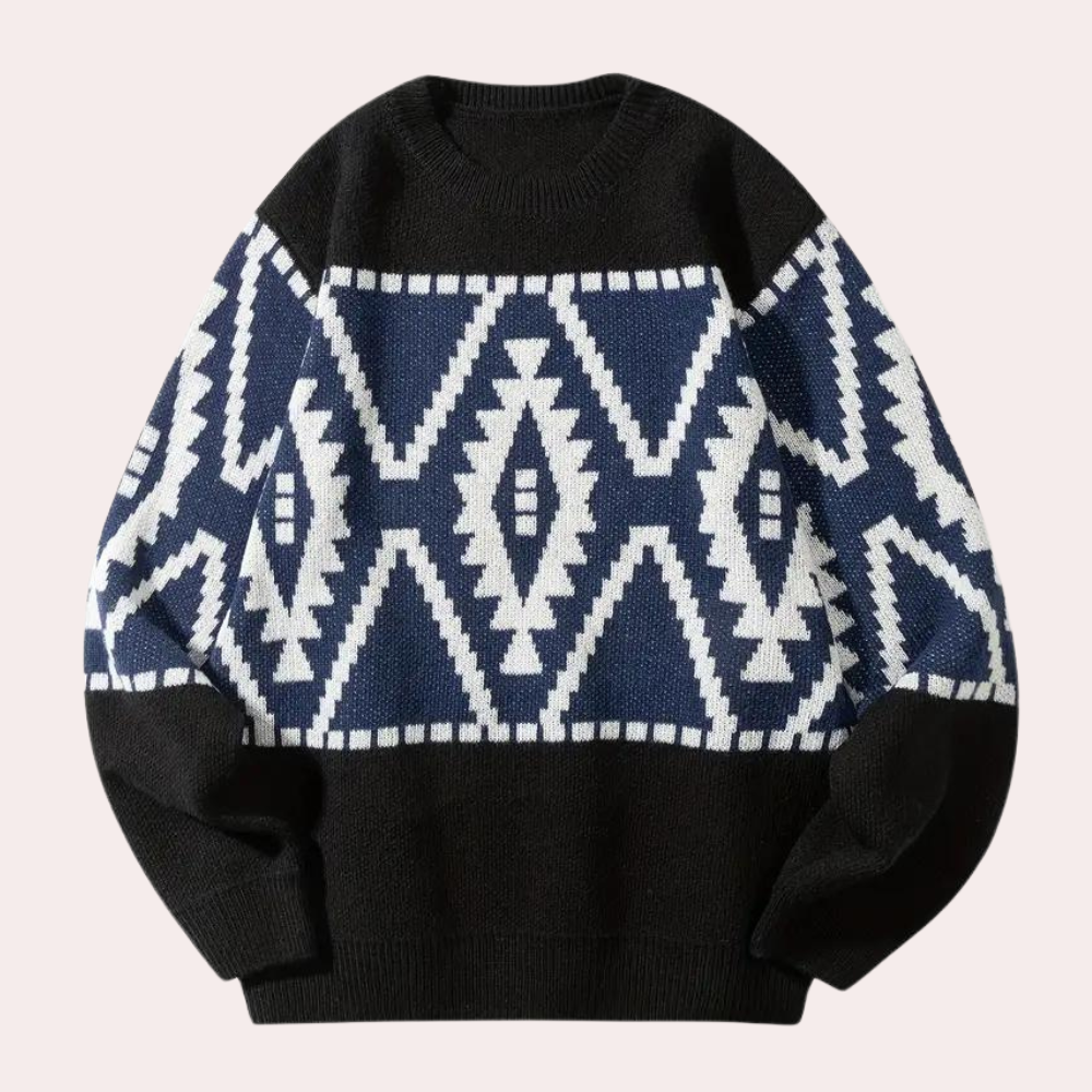 Heren Gebreide Trui met Aztec Motief | Oversized Fit | Retro Street Knit
