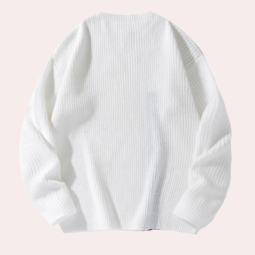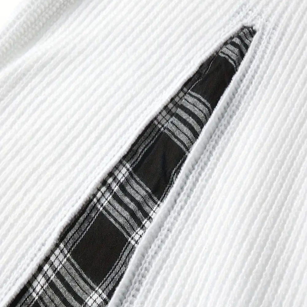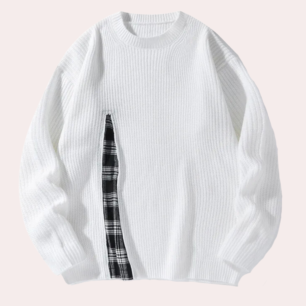 Heren Witte Trui met Geruite Inzet | Geribd Design | Asymmetrische Fashion Twist