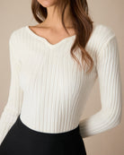 Ivory Wave Knit | Subtiele Golvende Halslijn | Minimalistische Elegantie