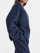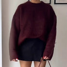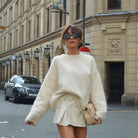 Draag de Parisian Soft Sweater met een minirok of pantalon en hoge laarzen voor een city-chique outfit. Voeg een grote zonnebril en een crossbody bag toe om de Parijse look compleet te maken. Perfect voor stijlvolle herfst- of winterdagen.