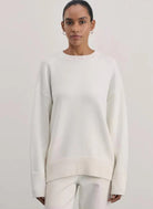 Draag de Serene Sweater op een geplooide wide-leg broek voor een moderne, nonchalante uitstraling. Voor een cozy look combineer je hem met een legging en sneakers. Voeg een lange jas toe om de outfit compleet te maken op koudere dagen.