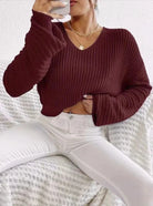 Soft Rib Knit | Diepe V-Hals | Elegante Trompetmouwen