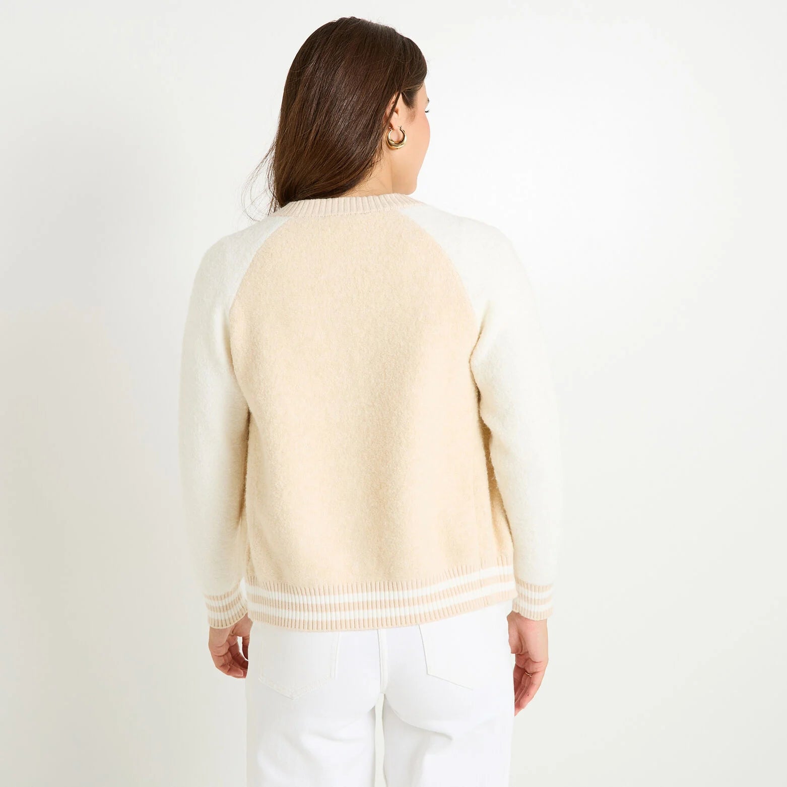 SoftVarsity Cardigan | Sportief & Zacht | Beige-Witte Combi
