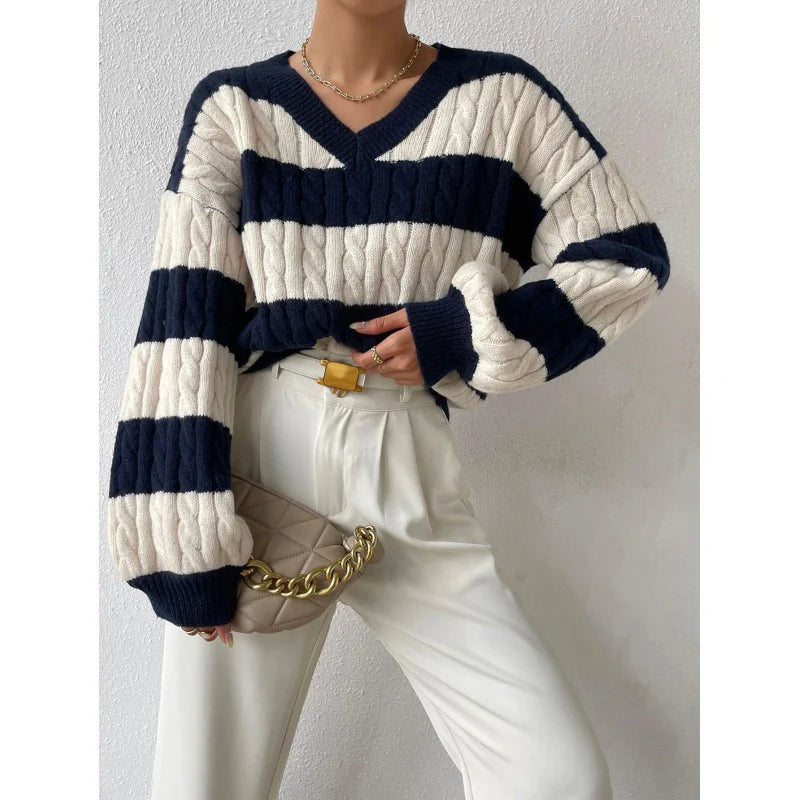 Striped Statement Sweater | Diepe V-Hals | Chunky Strepen