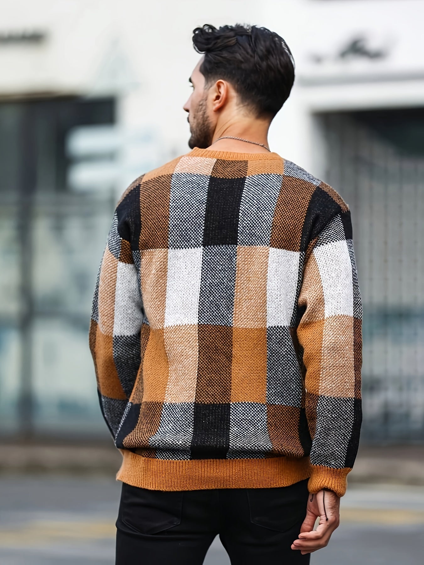 Op zoek naar een stijlvolle en comfortabele trui voor de koelere dagen? Deze heren trui met een trendy ruitpatroon combineert een tijdloos design met optimaal draagcomfort. De mix van warme tinten zoals bruin, zwart en wit maakt deze trui perfect voor zowel casual als geklede outfits. Gemaakt van een zachte en ademende stof die ideaal is voor dagelijks gebruik.