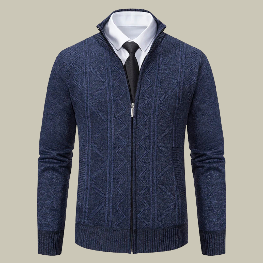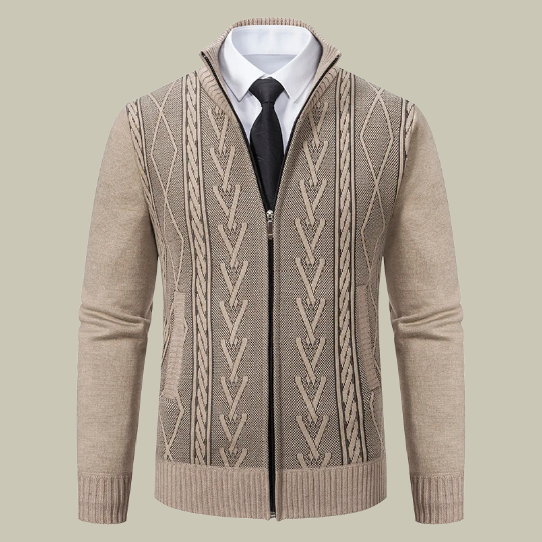 Elegant Zip Cardigan | Klassiek Kabelmotief | Zakelijke Finesse