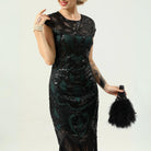 Combineer de Gatsby Nights Dress met pumps, een parelketting en een haarband met veer voor een authentieke jaren ’20 look. Perfect voor Great Gatsby feesten, cocktails of elegante dansavonden.