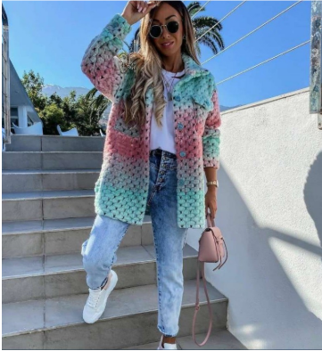Bubble Knit Jas | Geplooide Textuur | Kleurrijk Kleurverloop