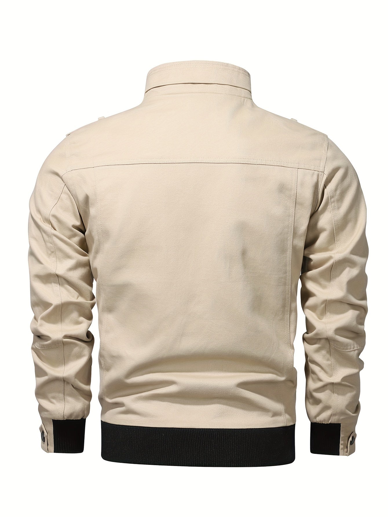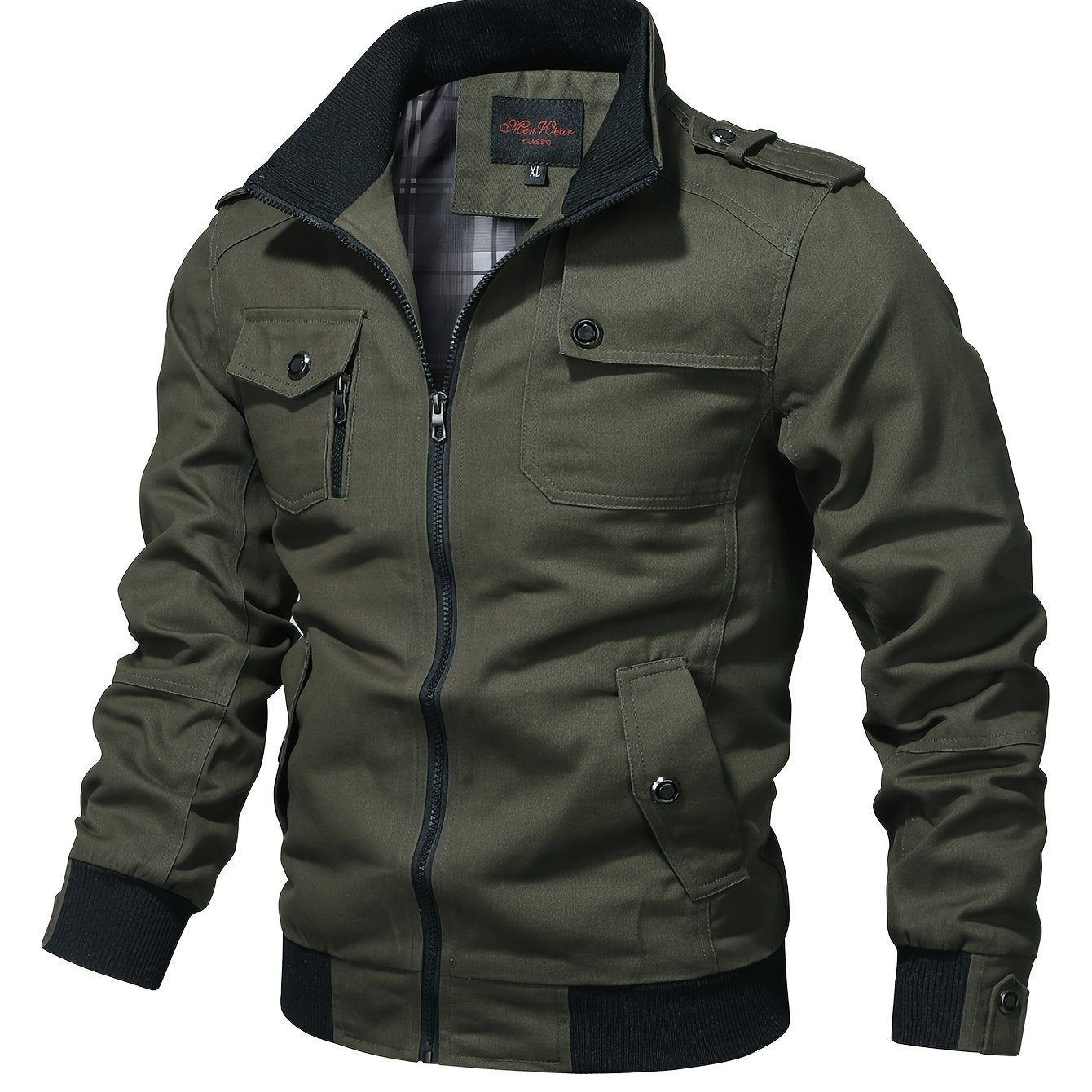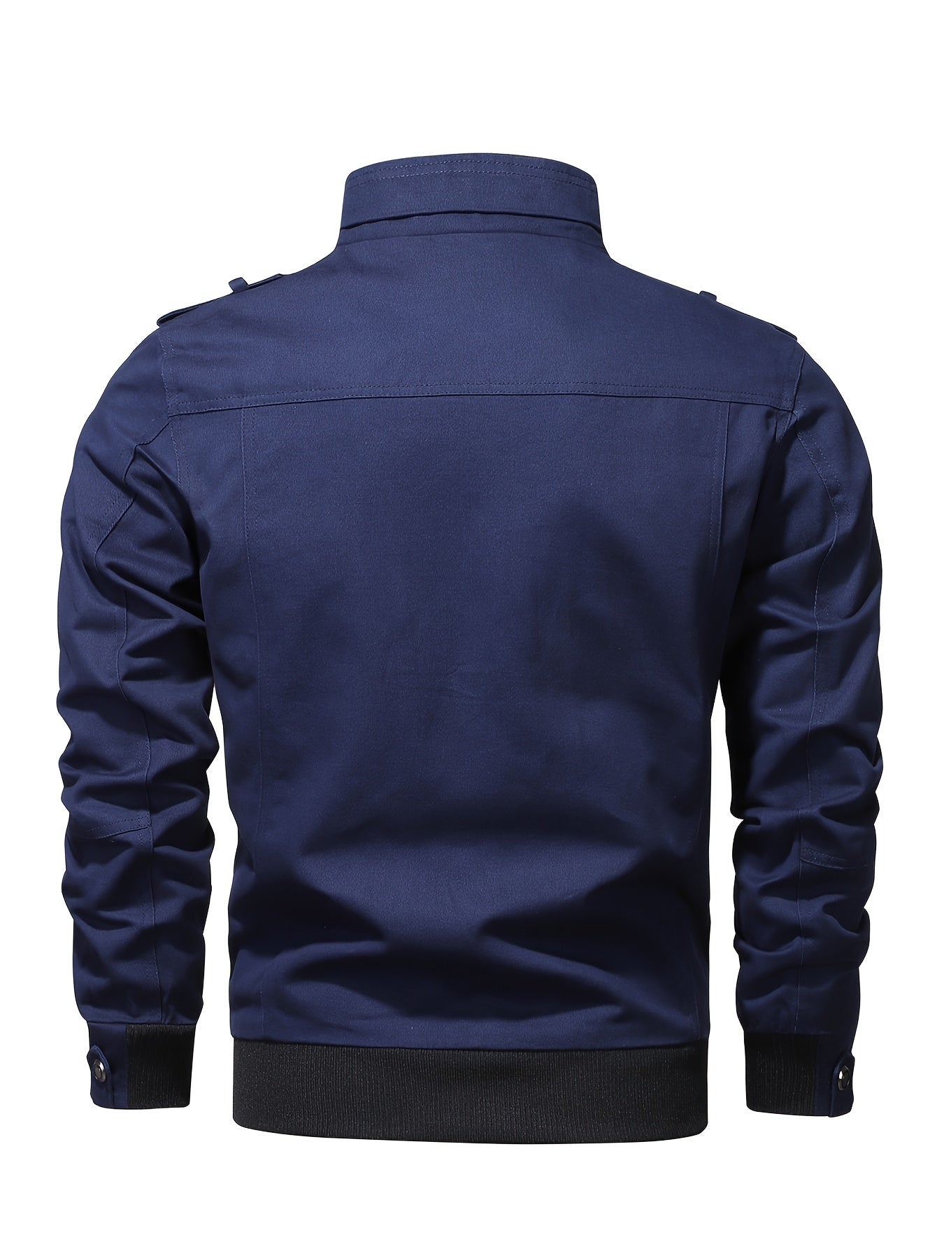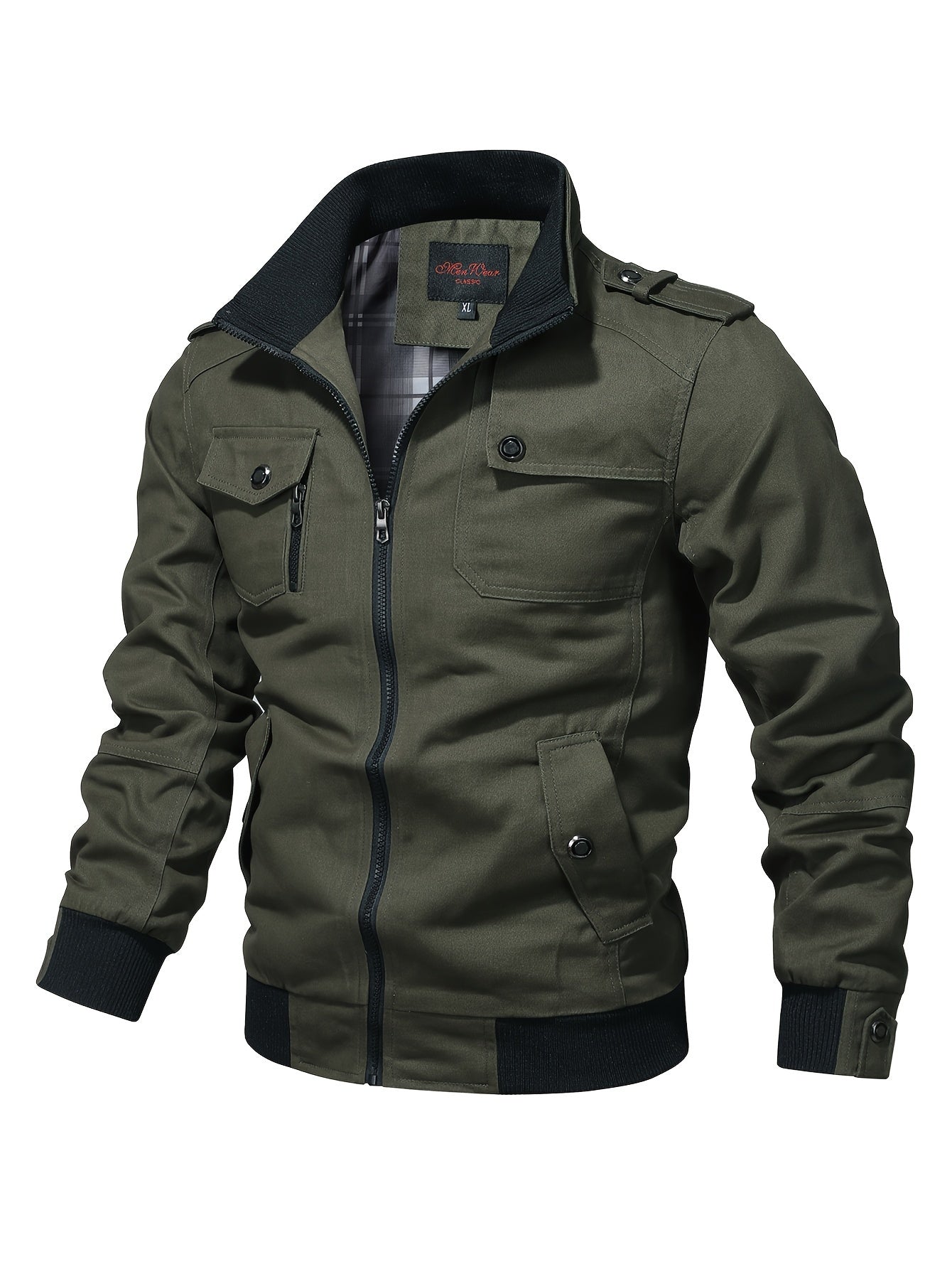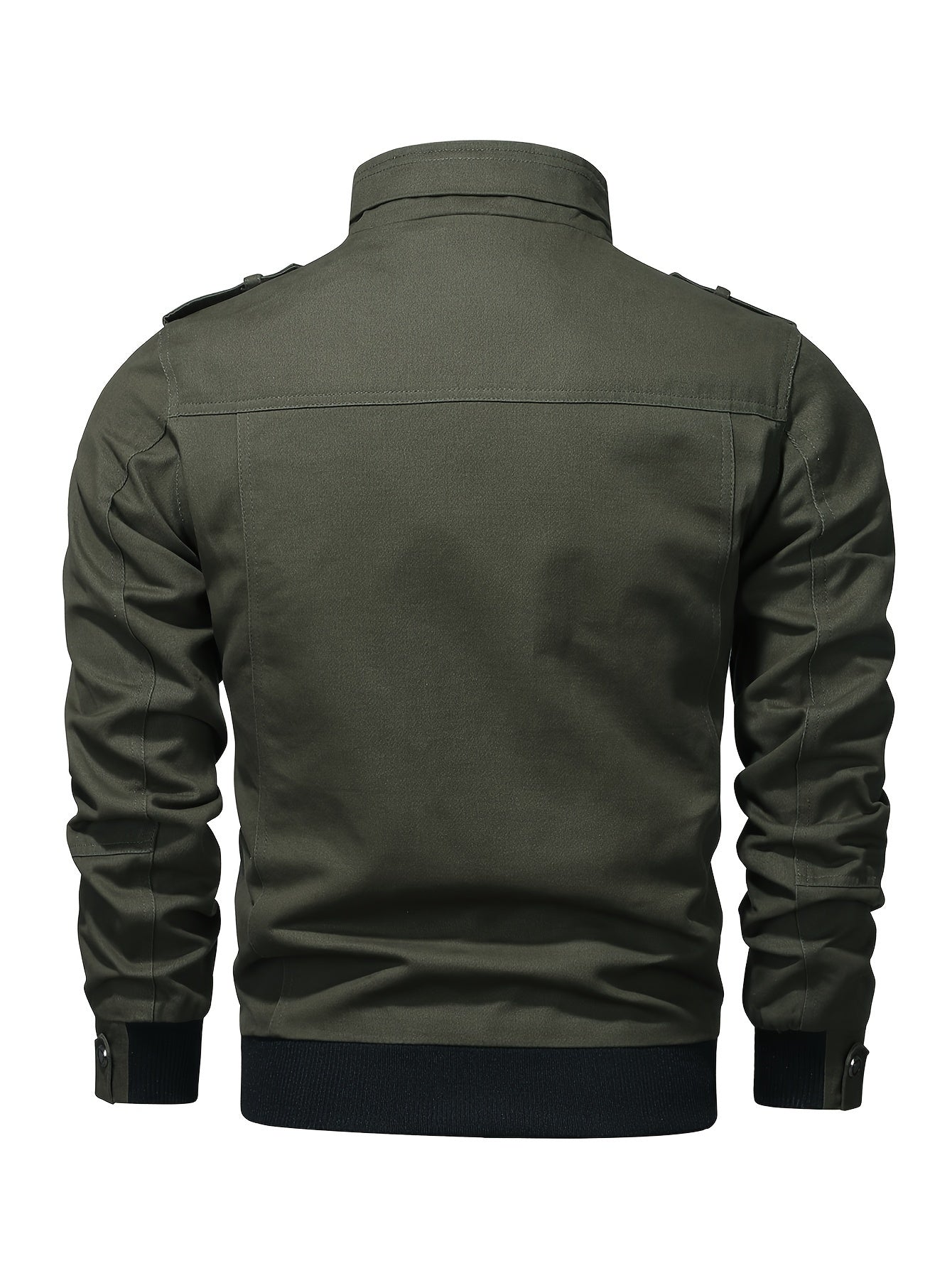 Dit bomberjack in militaire stijl combineert functionaliteit met een tijdloze look. Gemaakt van een duurzame katoen-polyester mix, met een opstaande kraag, ritssluiting en geribde boorden voor extra comfort en warmte. Voorzien van praktische zakken en schouderepauletten voor een robuuste, militaire uitstraling – ideaal voor casual dagen of weekendavonturen.
