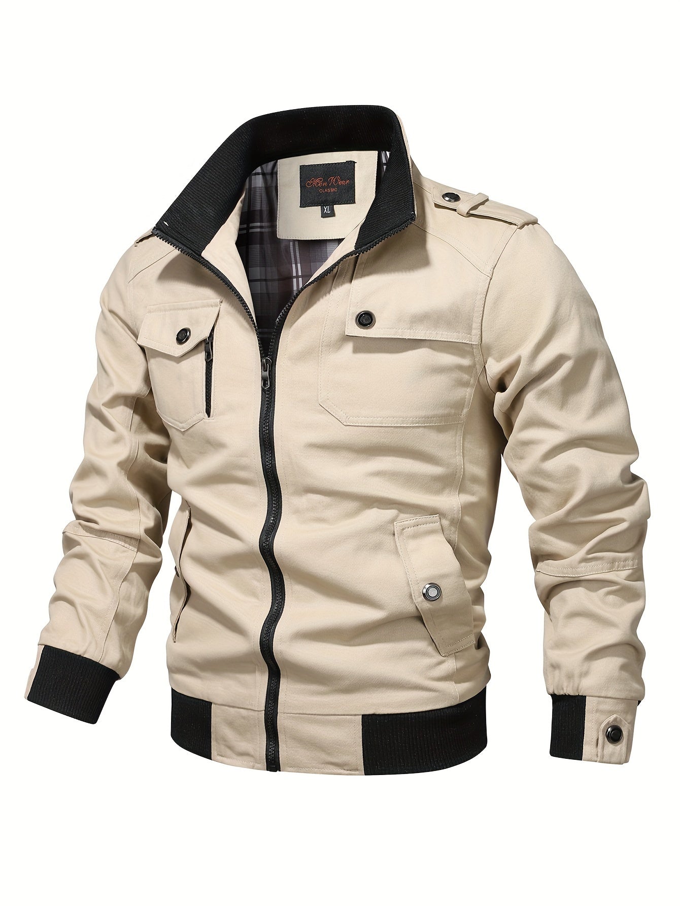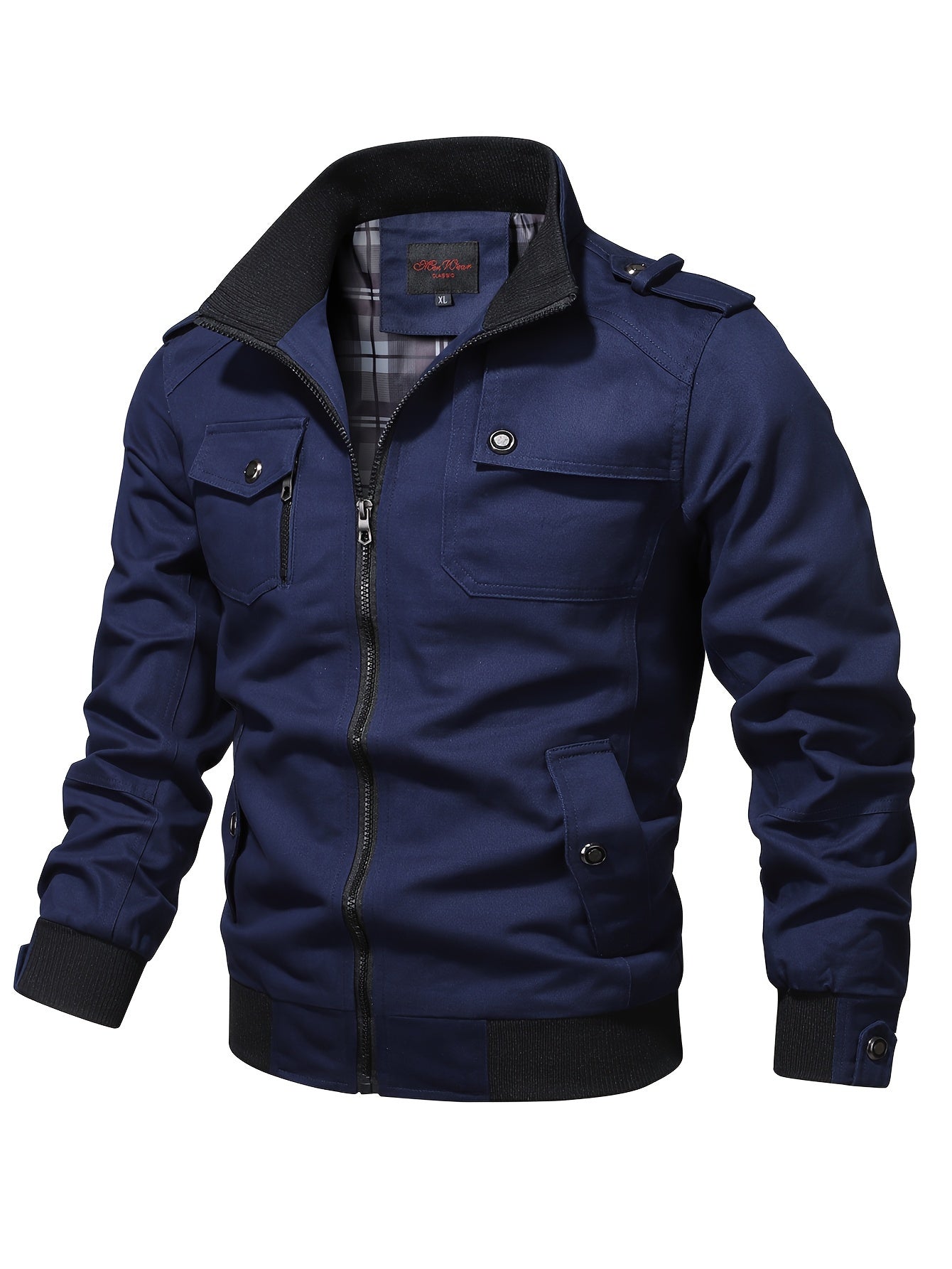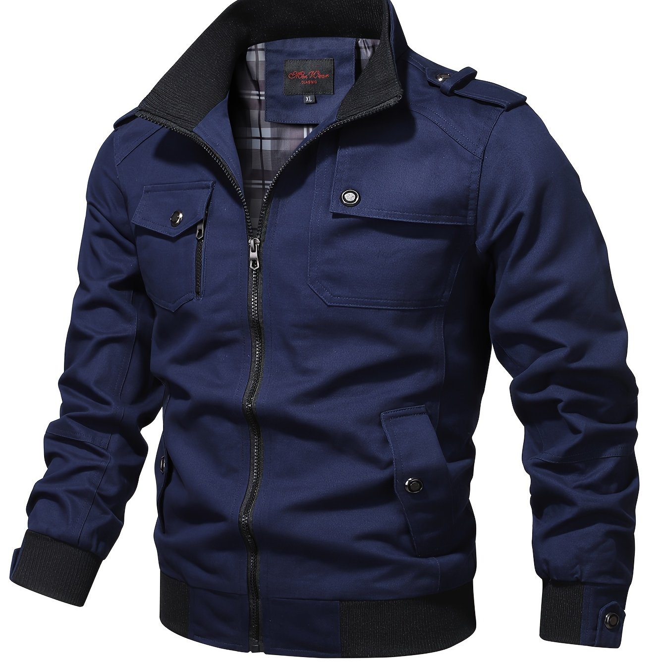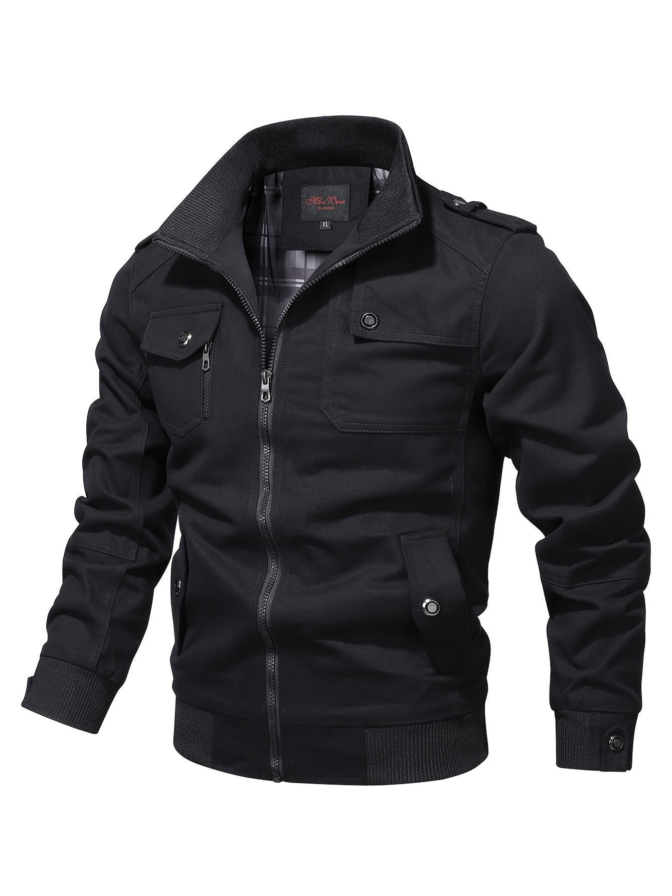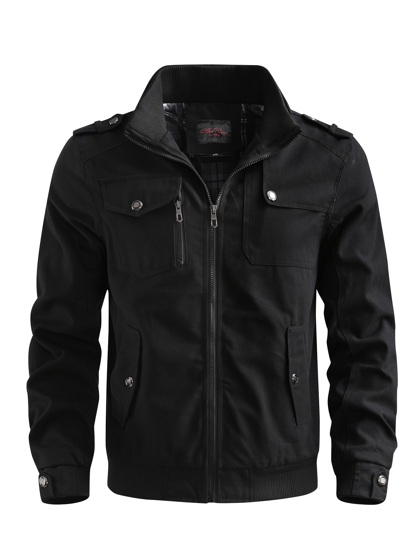 Dit bomberjack in militaire stijl combineert functionaliteit met een tijdloze look. Gemaakt van een duurzame katoen-polyester mix, met een opstaande kraag, ritssluiting en geribde boorden voor extra comfort en warmte. Voorzien van praktische zakken en schouderepauletten voor een robuuste, militaire uitstraling – ideaal voor casual dagen of weekendavonturen.