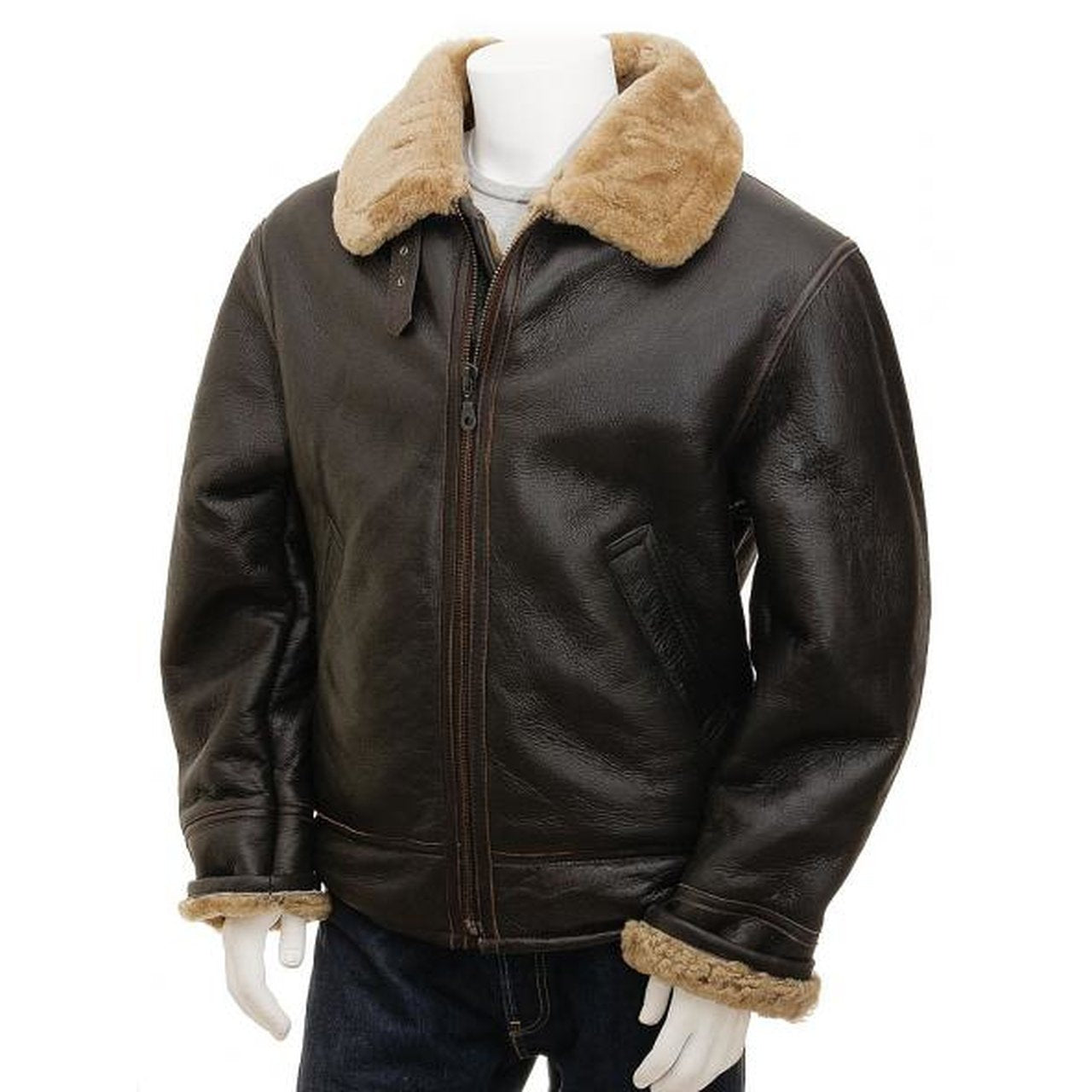 Heren Pilotenjas van Kunstleer | Imitatiebont Kraag | Warme Winterstijl