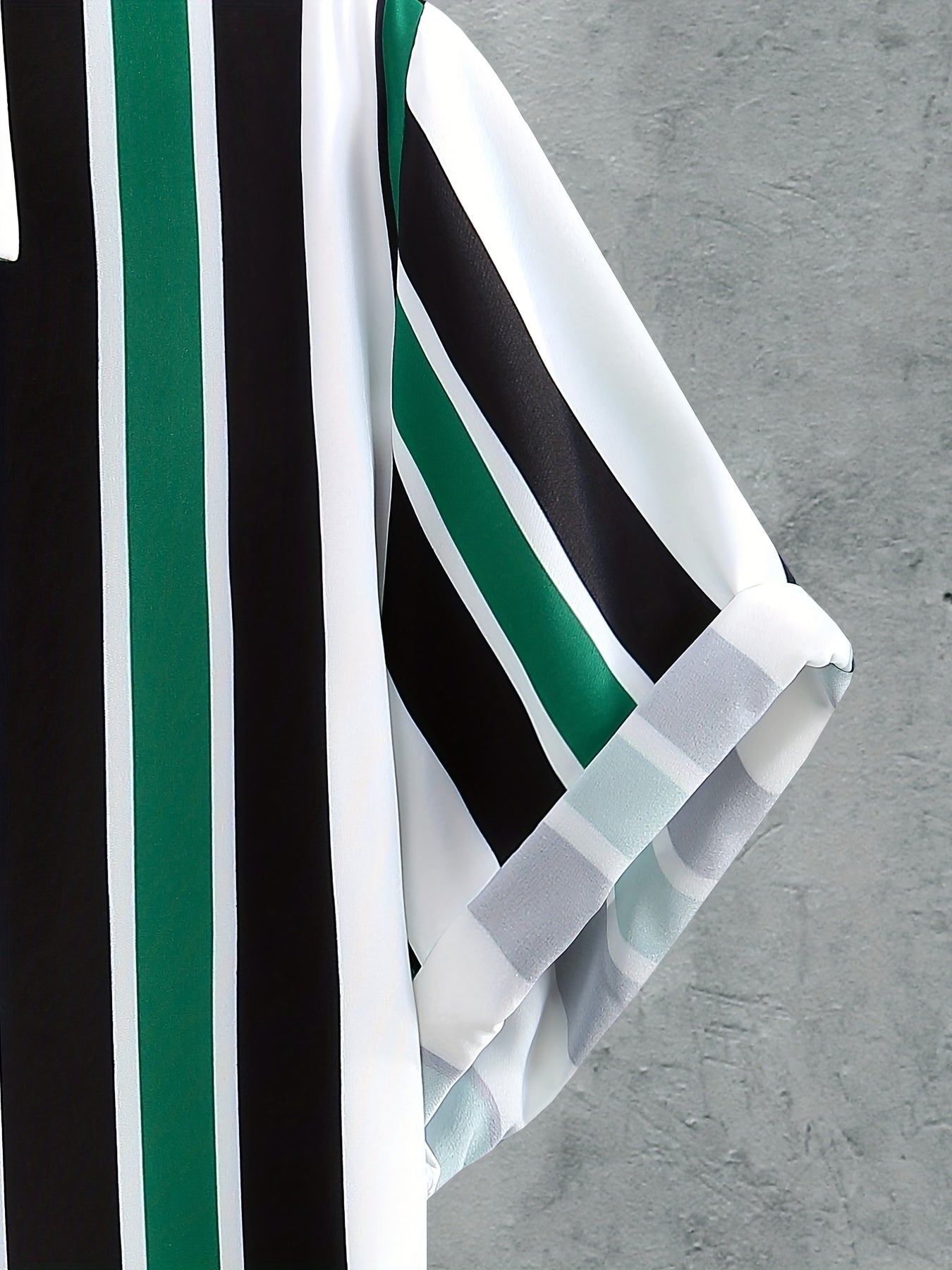 Design shirt: Korte mouwen, knoopsluiting, gestreept patroon