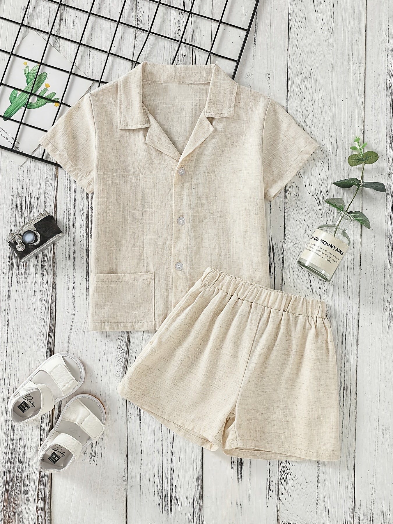 Deze heren lounge set bestaat uit een button-up shirt met klassieke kraag en een bijpassende short. De zachte, ademende stof voelt licht aan op de huid en biedt ultiem draagcomfort. Met z’n minimalistische en frisse uitstraling is deze set een stijlvolle keuze voor elke casual gelegenheid – of je nu thuis bent of onderweg.