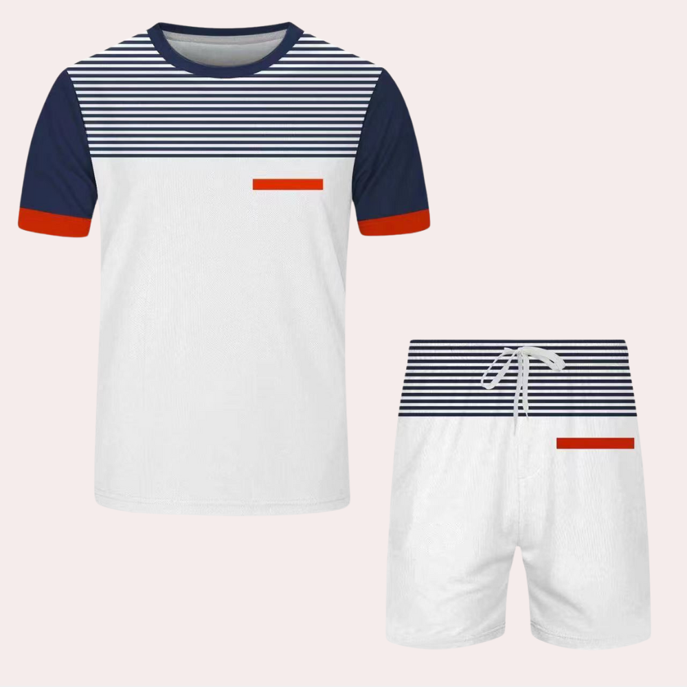 Heren Sportieve Zomerset | Colourblock T-shirt & Short | Athleisure Co-ord met Strepen