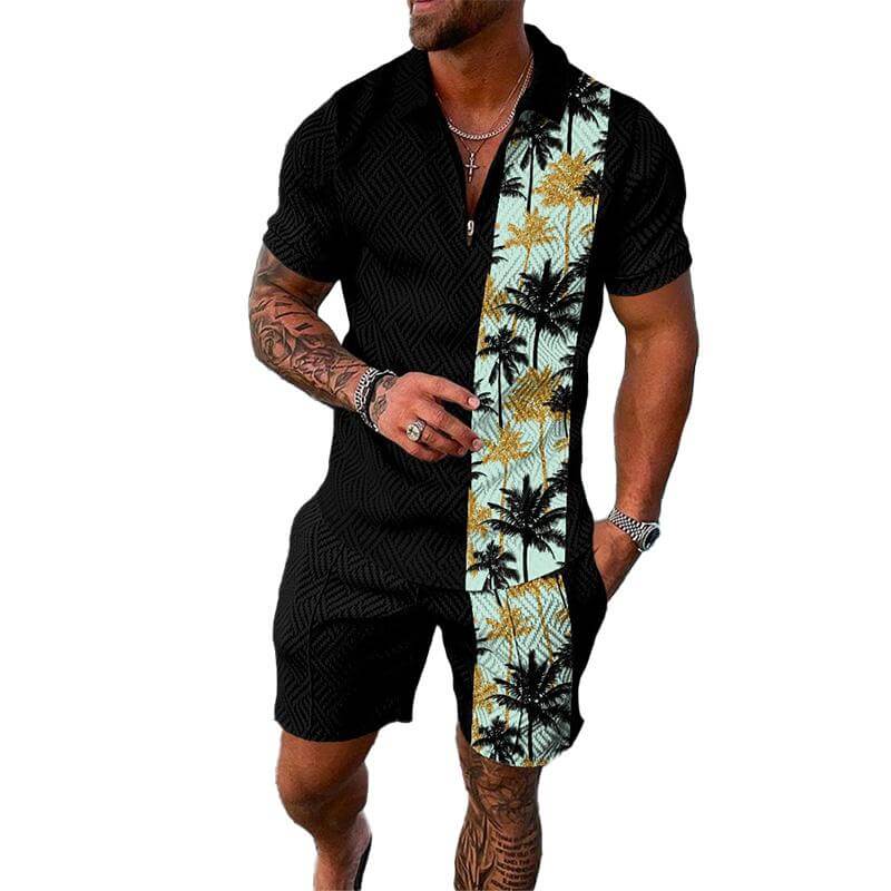 De Split Style Set is een opvallende zomerset die klassieke eenvoud combineert met gedurfde prints. Deze tweedelige outfit bestaat uit een overhemd en short met een asymmetrisch design – effen aan de ene zijde, en bedrukt aan de andere. Of het nu gaat om tropische palmbomen, sterren & strepen of abstracte motieven, deze set is gemaakt voor wie durft op te vallen.