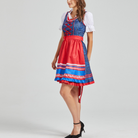 De Alpenrood Dirndl Jurk is een kleurrijke en feestelijke ode aan traditionele Beierse klederdracht. Met een klassiek lijfje, contrasterende veterdetails en een vrolijk schort is deze jurk perfect voor Oktoberfest, themafeesten of culturele evenementen. De frisse rood-blauw combinatie en fijne borduursels zorgen voor een speelse uitstraling met authentieke charme.