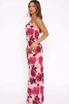 De Amara Dress is een elegante maxi slipdress die romantiek en verfijning uitstraalt. Met zijn slanke silhouet en vloeiende stof benadrukt de jurk op subtiele wijze de vormen, terwijl de roze bloemenprint zorgt voor een speelse en vrouwelijke uitstraling. De zachte glans van de stof geeft de jurk een luxueuze touch, perfect voor diners, bruiloften of zomerse avondfeesten.