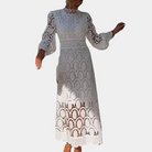 De Amara Lace Dress is een verfijnde jurk die klassieke charme combineert met moderne elegantie. Het prachtige opengewerkte kant zorgt voor een luxe uitstraling, terwijl de driekwart ballonmouwen en hoge halslijn een stijlvol silhouet creëren. De midi-lengte maakt deze jurk perfect voor bruiloften, diners of chique evenementen.