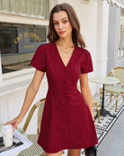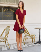 De Amélie Dress is een charmante korte jurk met een Franse flair. De diepe wijnrode kleur, elegante V-hals en korte mouwen maken deze jurk perfect voor een dag in de stad of een casual date. De subtiele A-lijn en knoopsluiting aan de voorkant zorgen voor een vrouwelijke, tijdloze look.