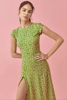 Amélie Jurk | Midi met Split | Fris Bloemenmotief in Limoengroen