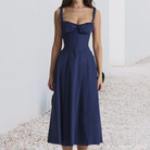 De Amélie Sundress is een ode aan vrouwelijke elegantie en zomerse charme. Met haar nauwsluitende top, delicate spaghettibandjes en zwierige midaxi-rok benadrukt deze jurk subtiel het silhouet. De verfijnde bloemenprint of effen kleur brengt een frisse, romantische sfeer – perfect voor lentedagen, tuinfeesten of vakantiediners. Lichtgewicht en soepel vallend voor ultiem comfort én stijl.