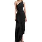 De Aura Dress is een moderne interpretatie van klassieke elegantie. Met haar asymmetrische one-shoulder ontwerp en verfijnde plisséstructuur creëert deze jurk een sculpturaal silhouet dat moeiteloos flatteert. De soepel vallende stof beweegt sierlijk met elke stap, terwijl de subtiele stretch zorgt voor optimaal draagcomfort. Een tijdloos statementstuk voor feestelijke gelegenheden of stijlvolle diners.