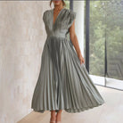 Aurora Dress | Geplooide Midi | Elegante Glans & Vrouwelijke Flair