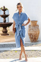 Azure Denim | Midi-jurk met Knoopsluiting | Getailleerd & Casual Chic