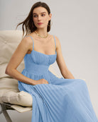 Azure Dress | Geplooide Midi | Strapless Zomerchic